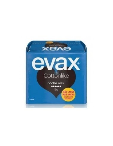 COMPRESAS HIGIENICAS FEMENINAS EVAX COTTONLIKE NOCHE CON ALAS 9 COMPRESAS