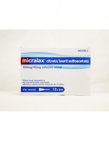 MICRALAX CITRATO/LAURIL SULFOACETATO 450 MG/ML + 45 MG/ML SOLUCION RECTAL 12 ENEMAS 5 ML